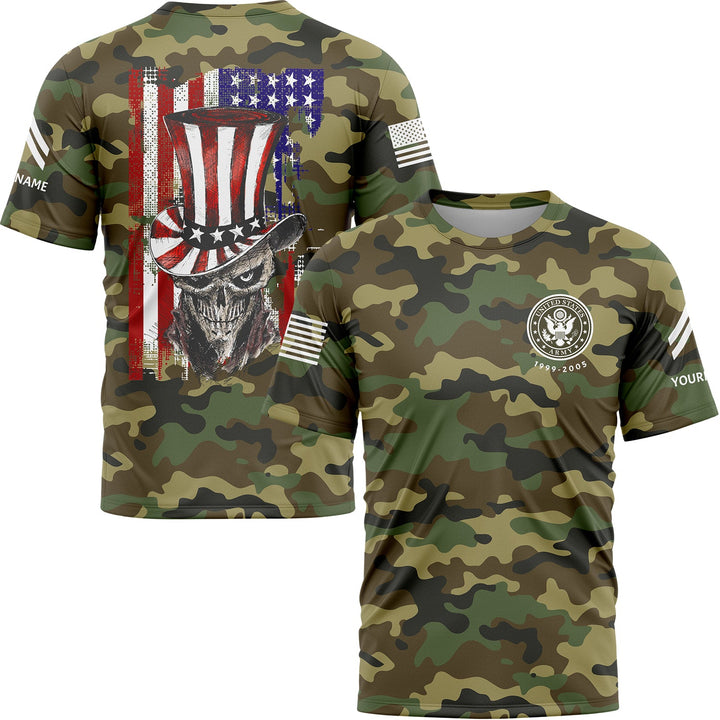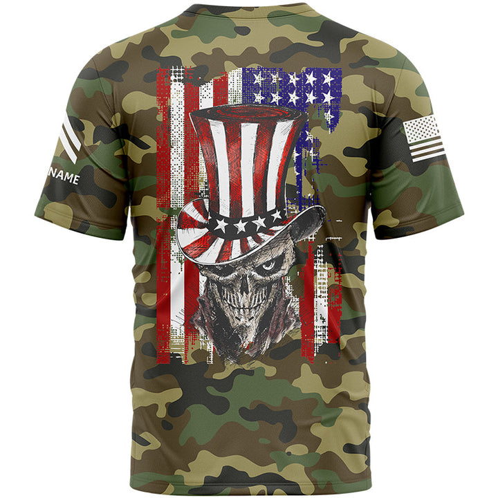 Custom Camo Magician Skull U.S Army Military Rank Corporal Name Independence Day T-Shirt | Father's Day Gifts