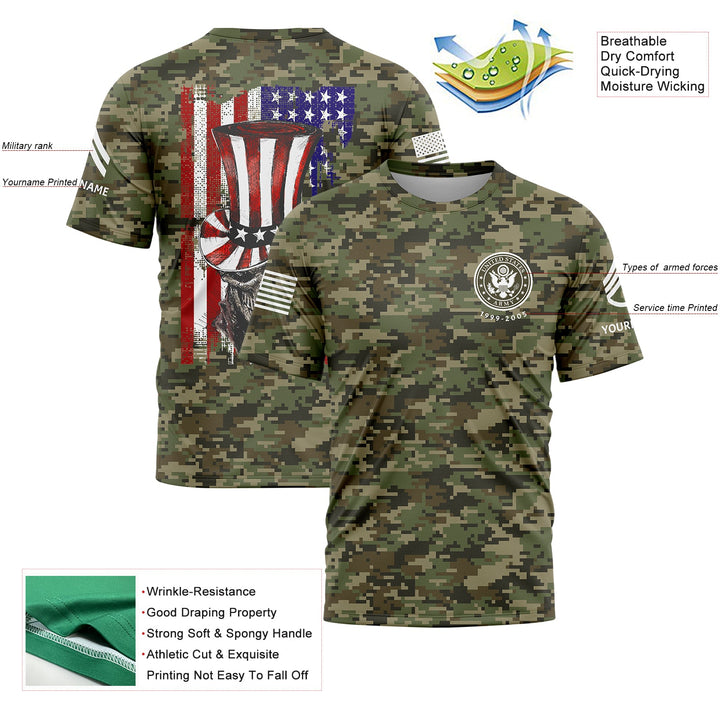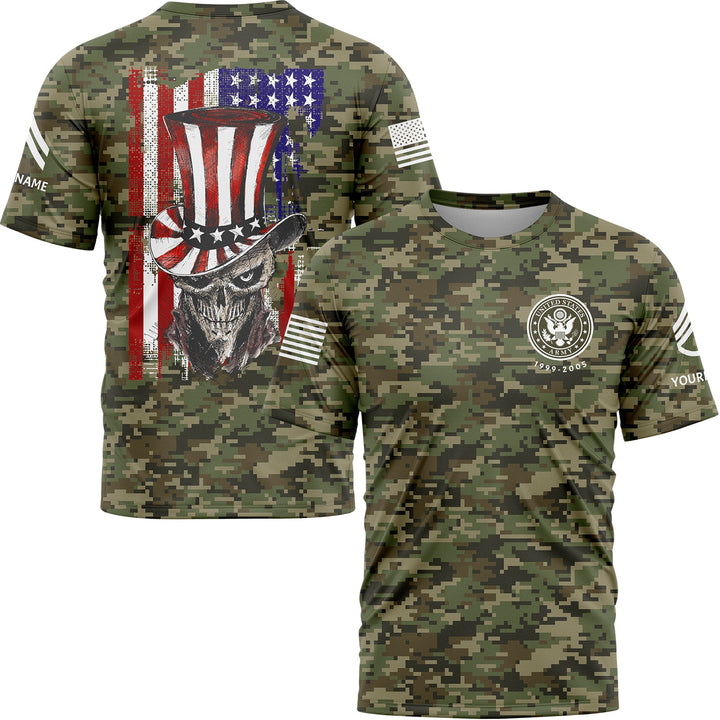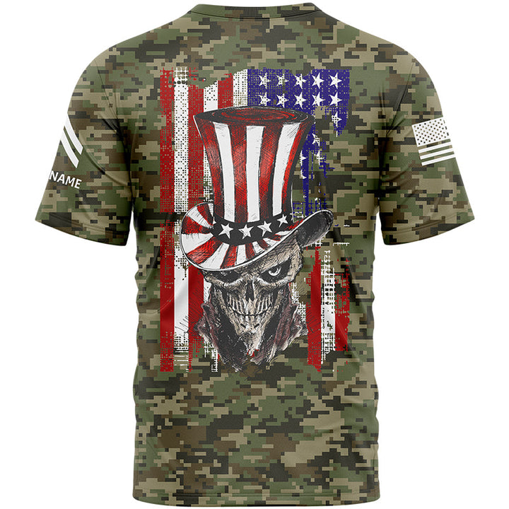Custom Camo Magician Skull U.S Army Military Rank Corporal Name Independence Day T-Shirt | Father's Day Gifts