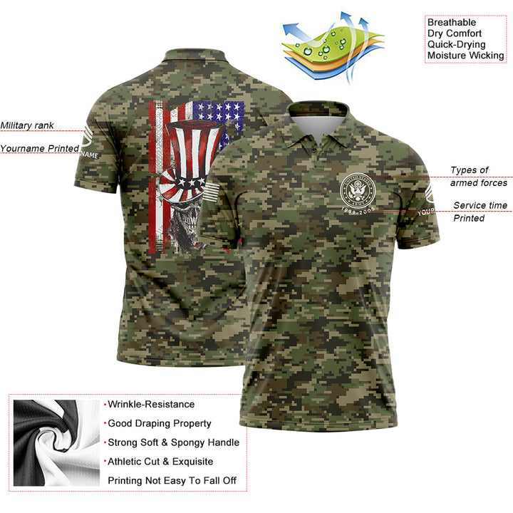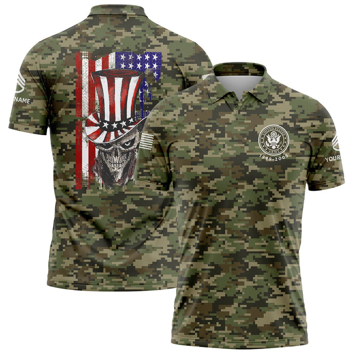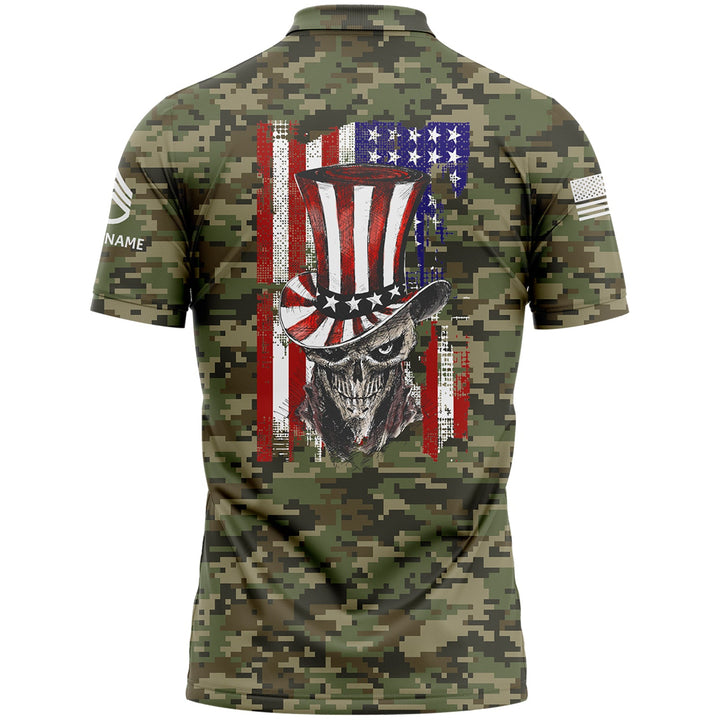 Custom Camo Magician Skull U.S. Army Military Staff Sergeant Rank Name Independence Day Golf Polo Shirt | Father's Day Gifts