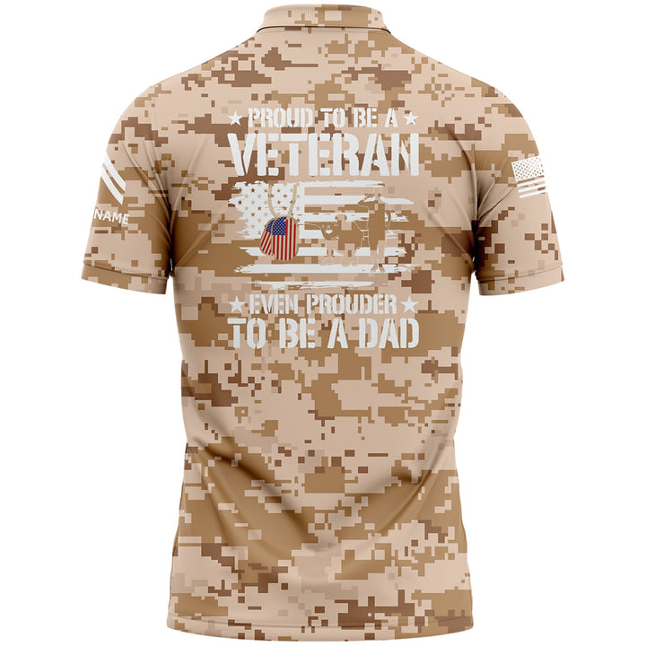 Custom Camo Proud To Be A Veteran Even Prouder To Be A Dad Flag U.S Army Military Corporal Rank Name Veterans Day Golf Polo Shirt | Father's Day Gifts