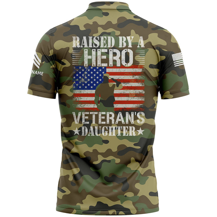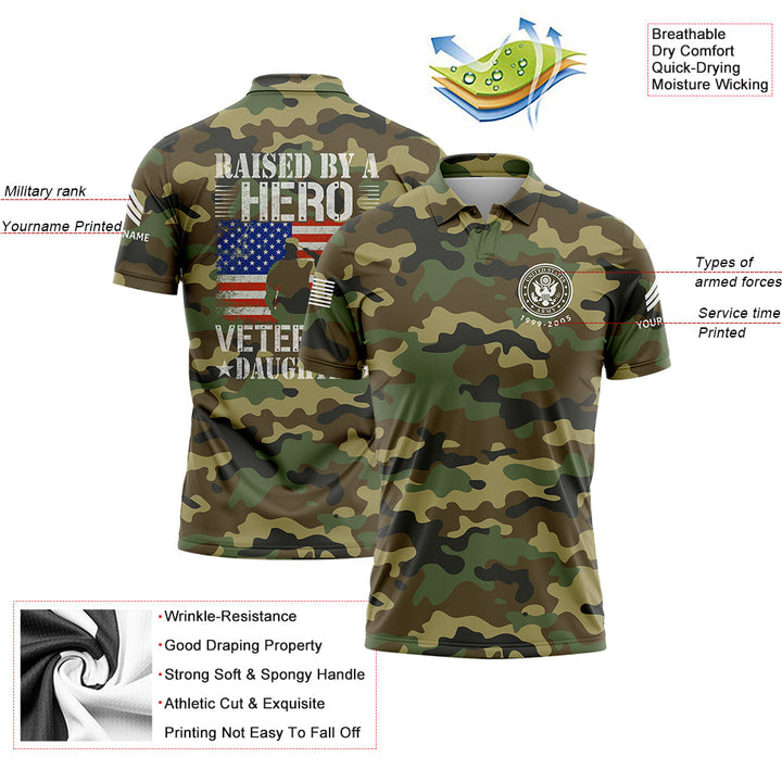 Custom Camo Raised By A Hero Flag U.S Army Military Sergeant Rank Name Veterans Day Golf Polo Shirt | Father's Day Gifts