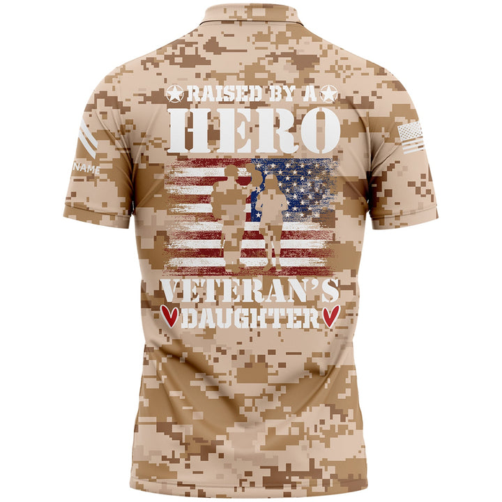 Custom Camo Raised By A Hero Veteran's Daughter Flag U.S. Army Military Corporal Rank Name Veterans Day Golf Polo Shirt | Father's Day Gifts