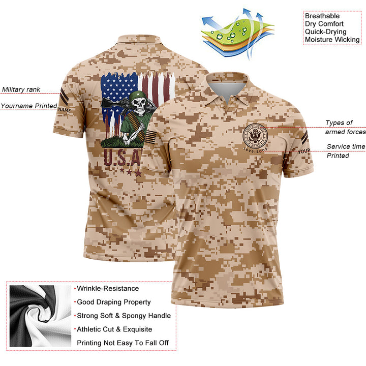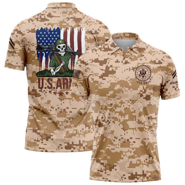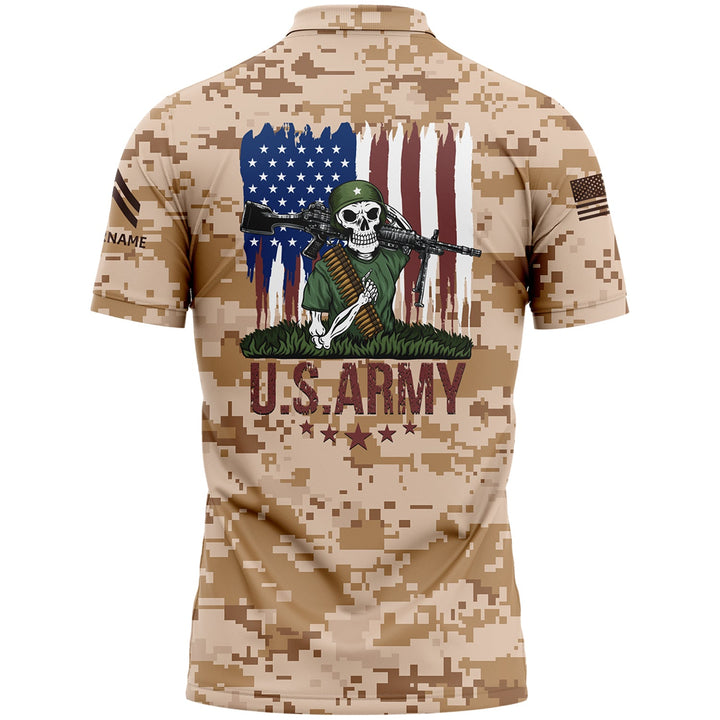 Custom Camo Skull Soldier American Flag U.S Army Military Corporal Rank Name Golf Polo Shirt | Father's Day Gifts