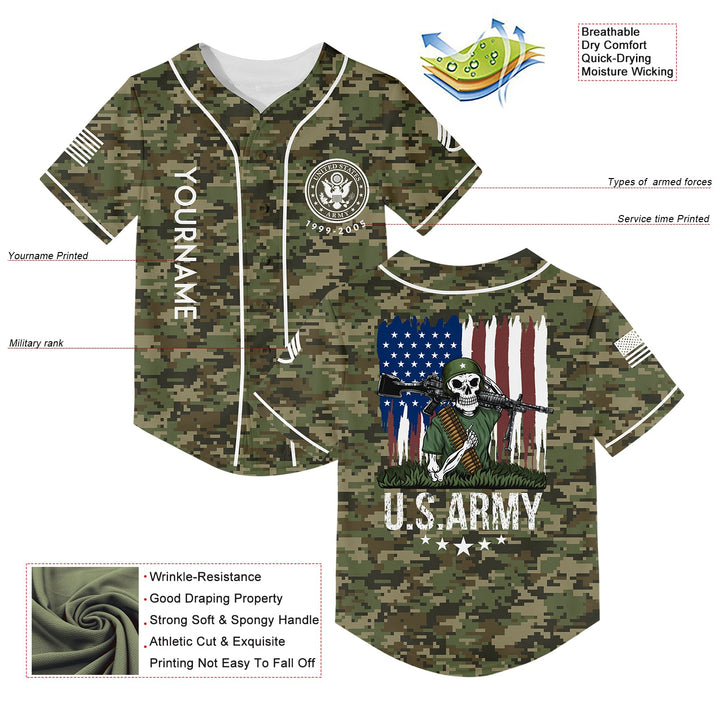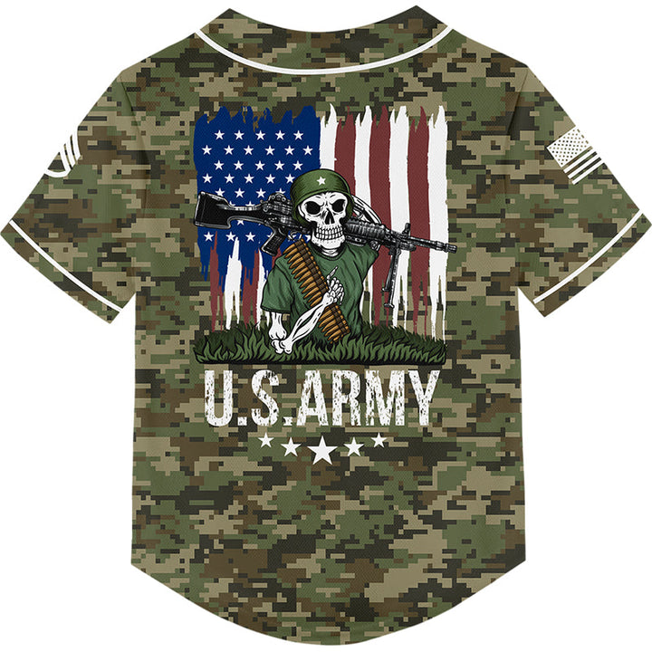 Custom Camo Skull Soldier American Flag U.S Army Military Staff Sergeant Rank Name Baseball Jersey | Father's Day Gifts