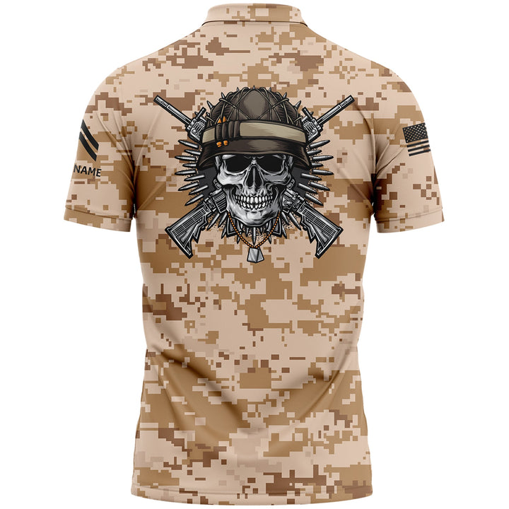 Custom Camo Skull U.S Army Military Corporal Rank Name Golf Polo Shirt | Father's Day Gifts