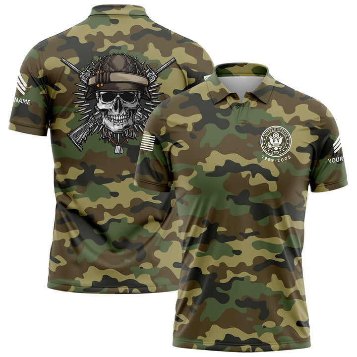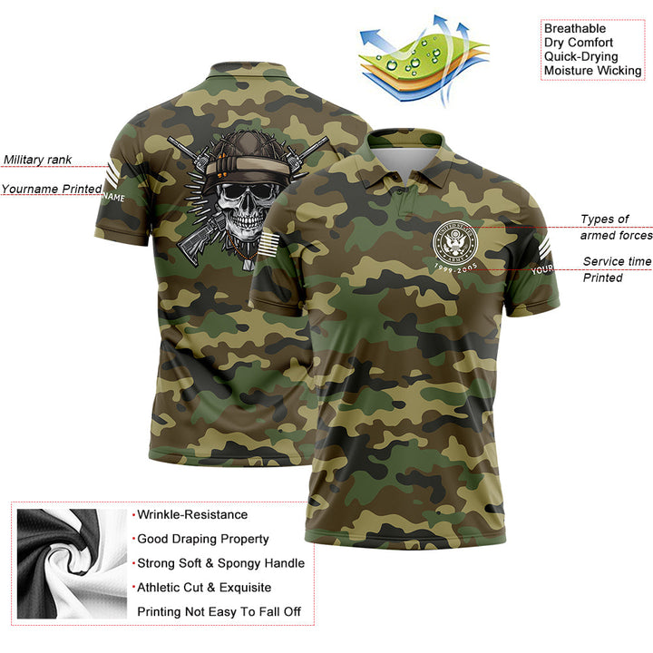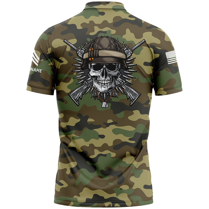 Custom Camo Skull U.S Army Military Sergeant Rank Name Golf Polo Shirt | Father's Day Gifts