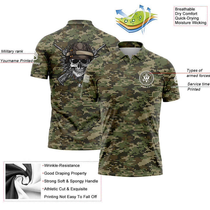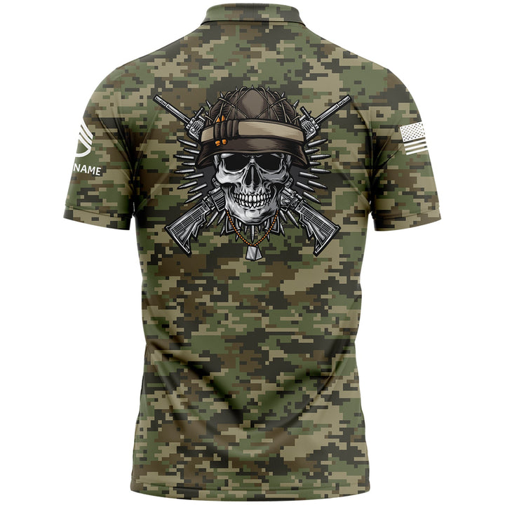Custom Camo Skull U.S Army Military Staff Sergeant Rank Name Golf Polo Shirt | Father's Day Gifts
