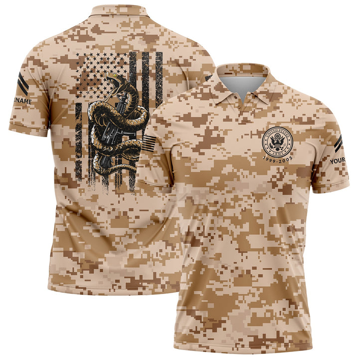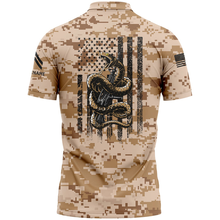 Custom Camo Snake American Flag U.S. Army Military Corporal Rank Veteran Name Memorial Day Name Golf Polo Shirt | Father's Day Gifts