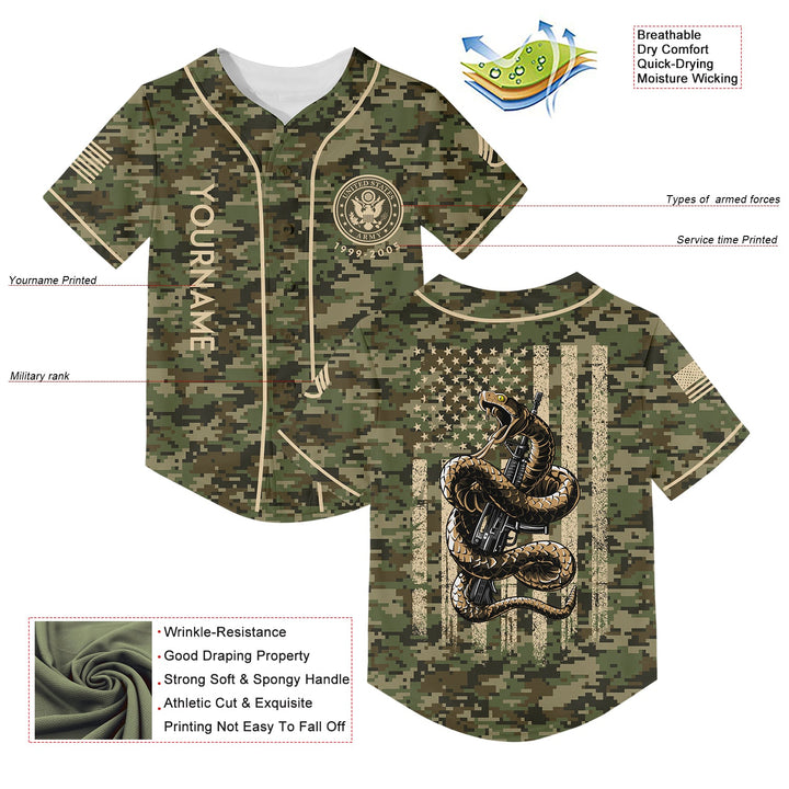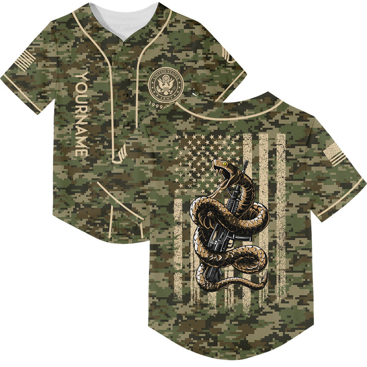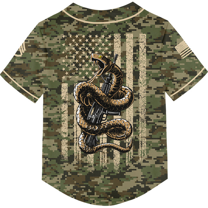 Custom Camo Snake American Flag U.S. Army Military Staff Sergeant Rank Veteran Name Memorial Day Name Baseball Jersey | Father's Day Gifts