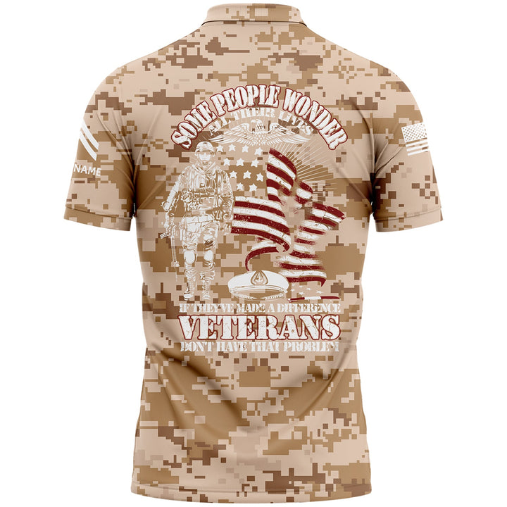 Custom Camo Some People Wonder All Their Lives If They've Made A Difference Veterans Don't Have That Problem Flag U.S. Army Military Corporal Rank Name Veterans Day Golf Polo Shirt | Father's Day Gifts