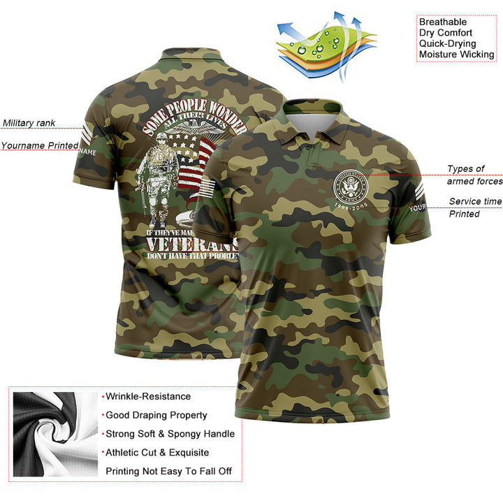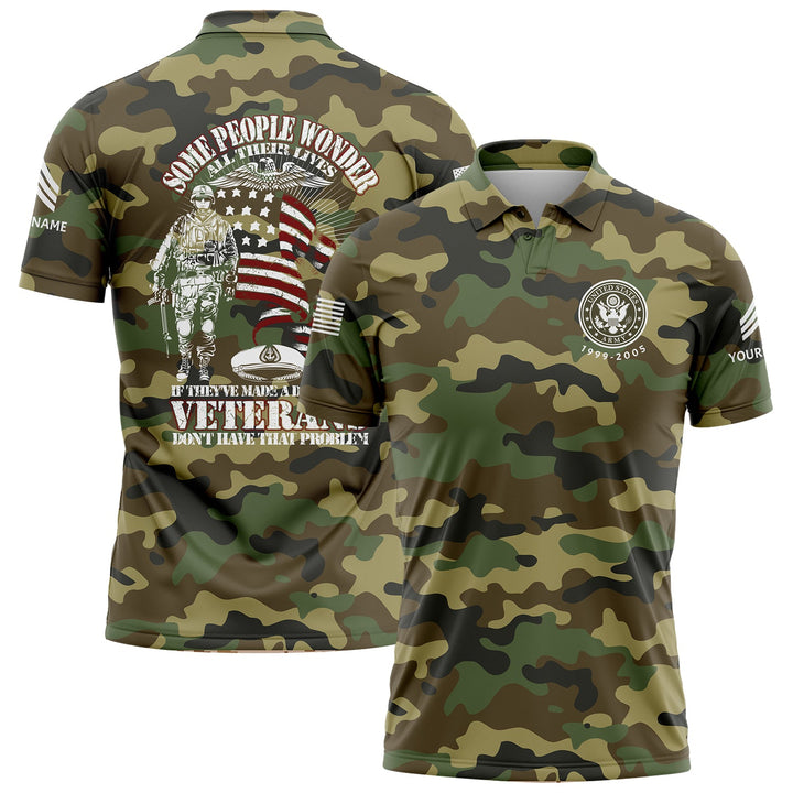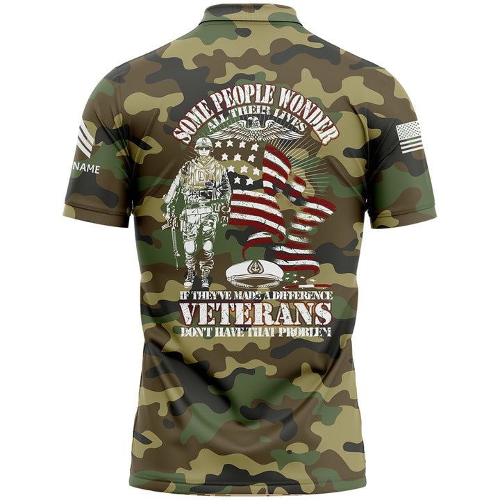 Custom Camo Some People Wonder All Their Lives If They've Made A Difference Veterans Don't Have That Problem Flag U.S. Army Military Sergeant Rank Name Veterans Day Golf Polo Shirt | Father's Day Gifts