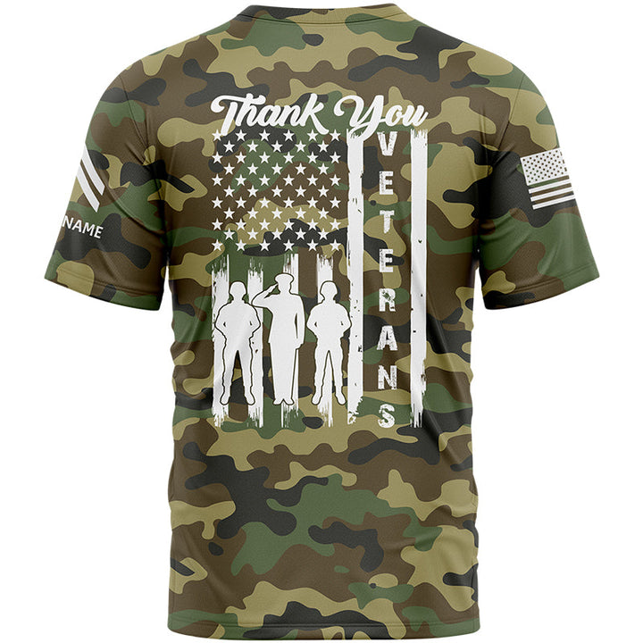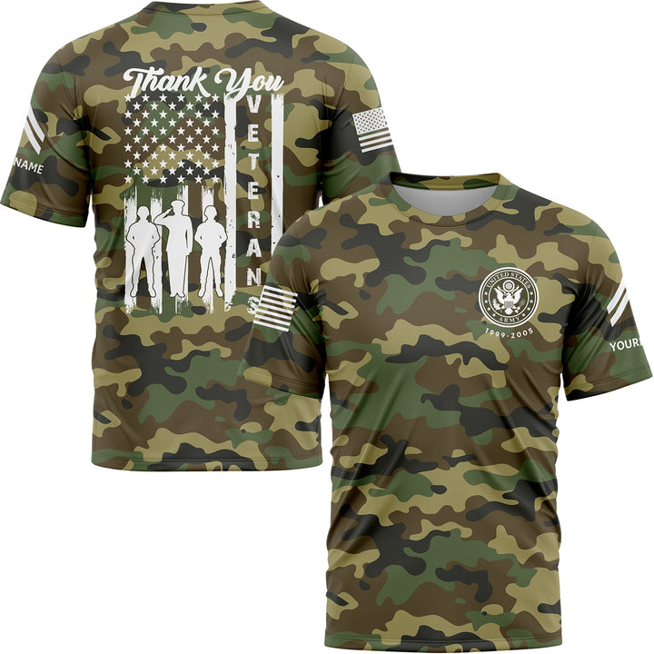 Custom Camo Thank You Veterans Flag U.S Army Military Rank Corporal Name Veterans Day T-Shirt | Father's Day Gifts