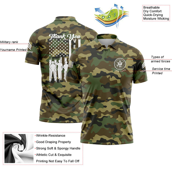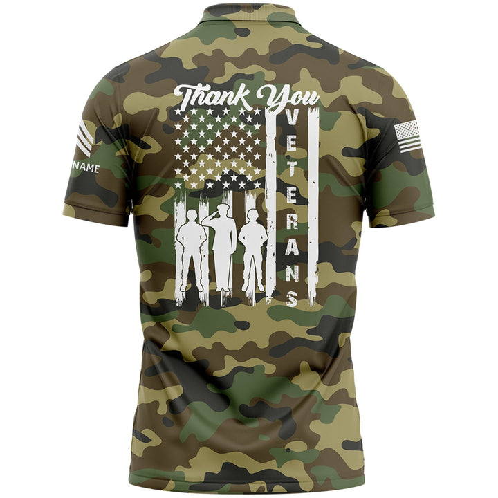 Custom Camo Thank You Veterans Flag U.S Army Military Sergeant Rank Name Veterans Day Golf Polo Shirt | Father's Day Gifts