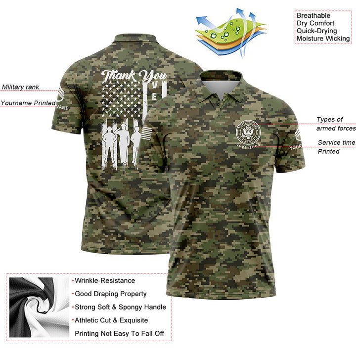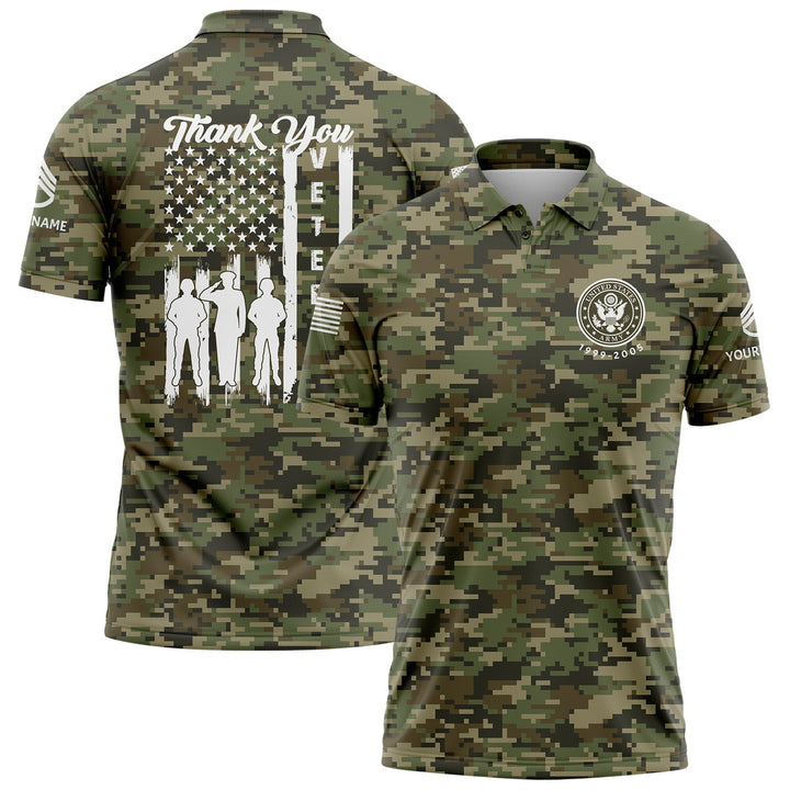 Custom Camo Thank You Veterans Flag U.S Army Military Staff Sergeant Rank Name Veterans Day Golf Polo Shirt | Father's Day Gifts