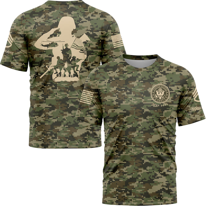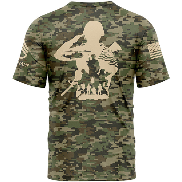 Custom Camo U.S Army Military Rank Staff sergeant Veteran Name T-Shirt | Father's Day Gifts