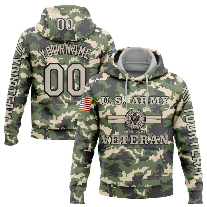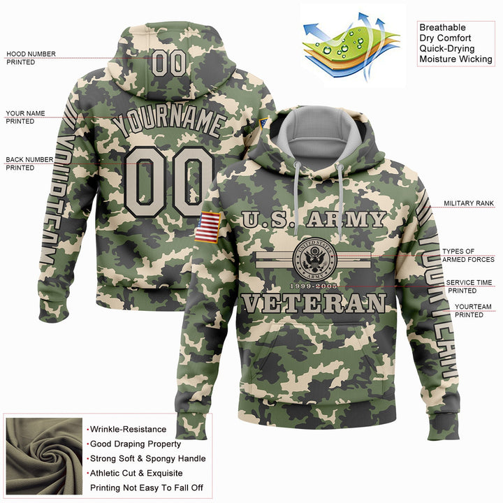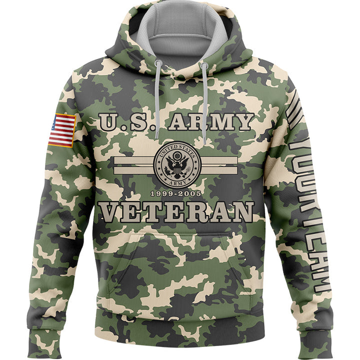 Custom Camo U.S Army Military Rank Veteran Name Number Hoodie