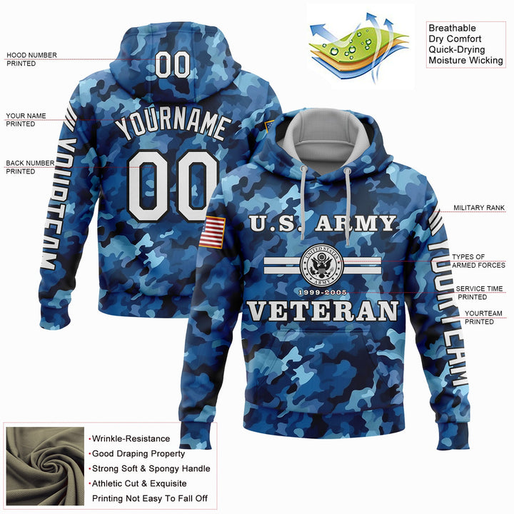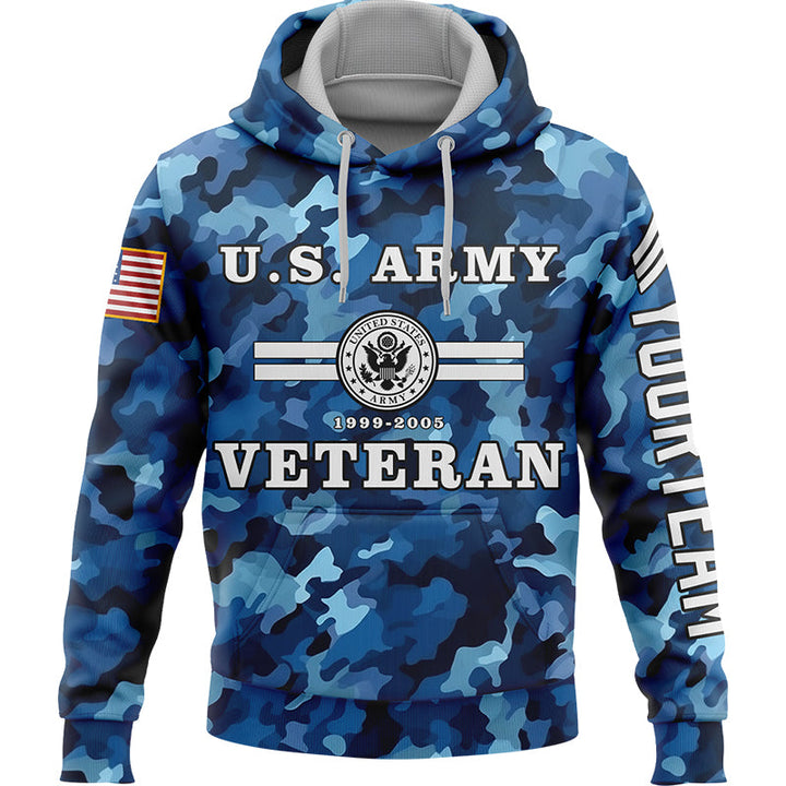 Custom Camo U.S Army Military Rank Veteran Name Number Hoodie