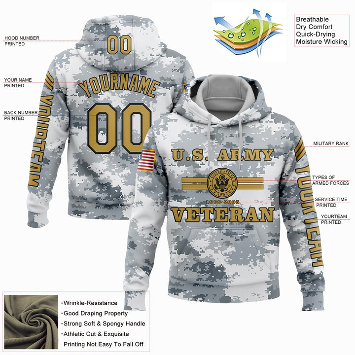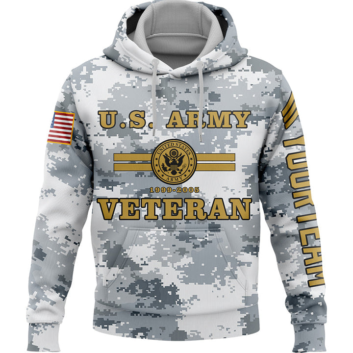 Custom Camo U.S Army Military Rank Veteran Name Number Hoodie