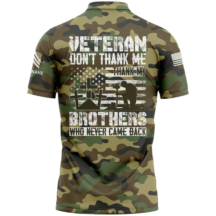 Custom Camo Veteran Don't Thank Me Thank My Brothers Who Never Came Back Flag U.S. Army Military Sergeant Rank Name Veterans Day Golf Polo Shirt | Father's Day Gifts