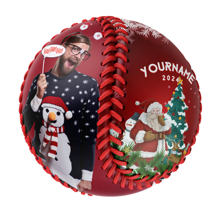 Custom Christmas Santa Claus Snowman Tree Photo Baseballs