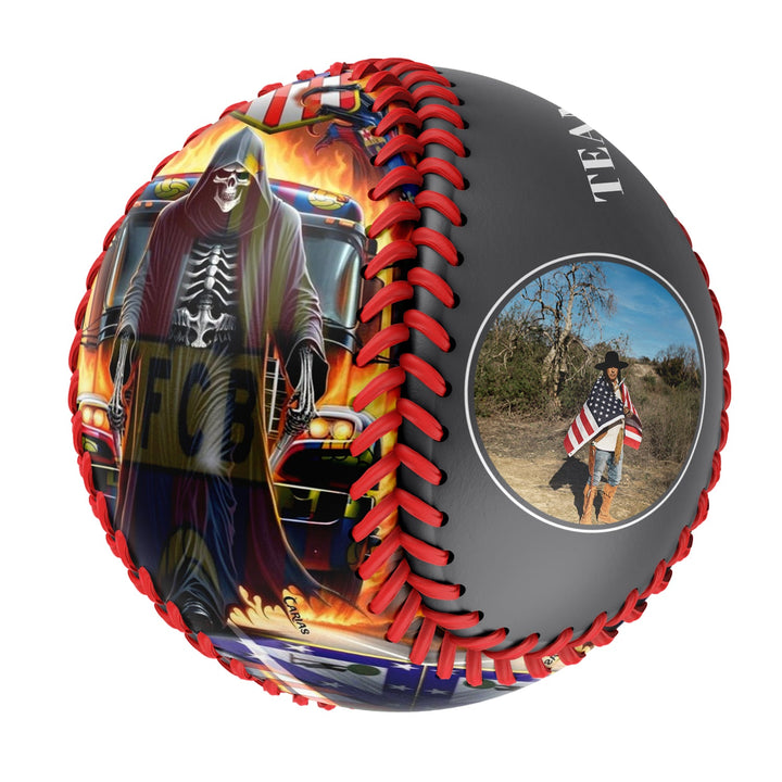 Custom Dark Grey American Flag Truck Grim Reaper Photo Baseballs