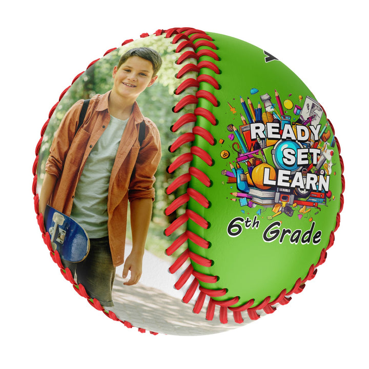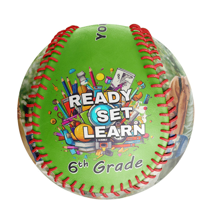 Custom Gold Ready Set Learn Starting School 6th Grade Photo Baseballs