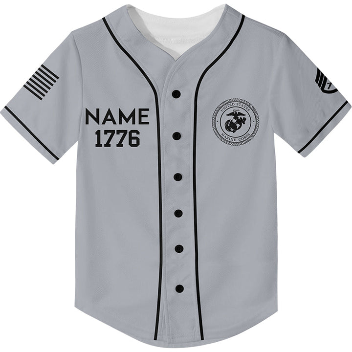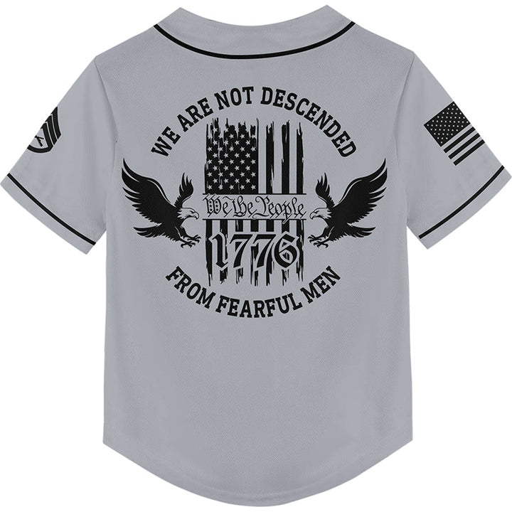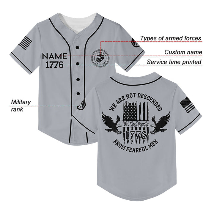 Custom Grey 1776 We Are Not Descended From Fearful Men Military Rank Veteran Name Baseball Jersey