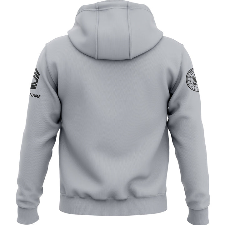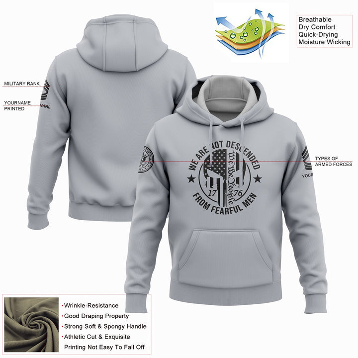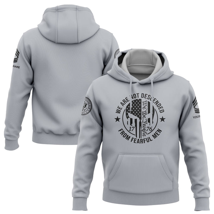 Custom Grey 1776 We Are Not Descended From Fearful Men Military Rank Veteran Name Hoodie