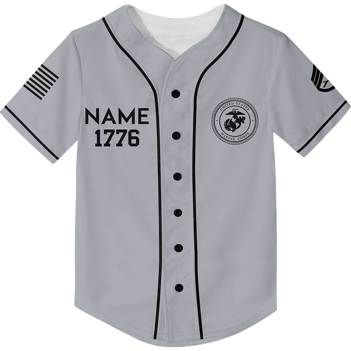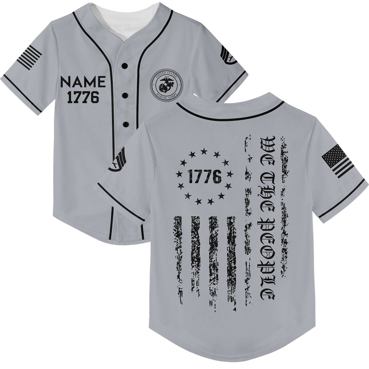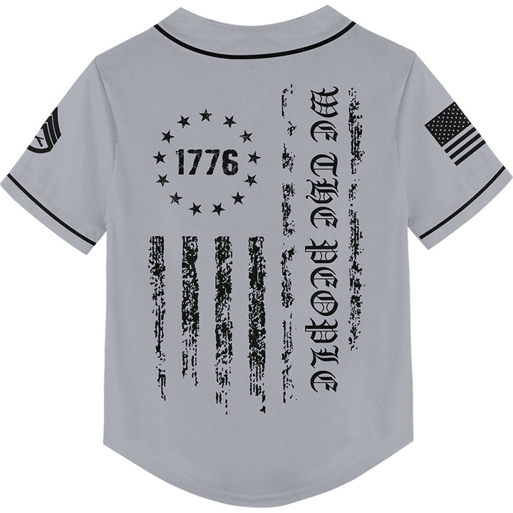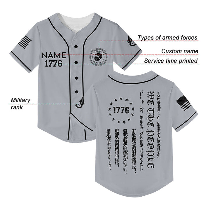 Custom Grey 1776 We The People Freedom American Flag Military Rank Veteran Name Baseball Jersey