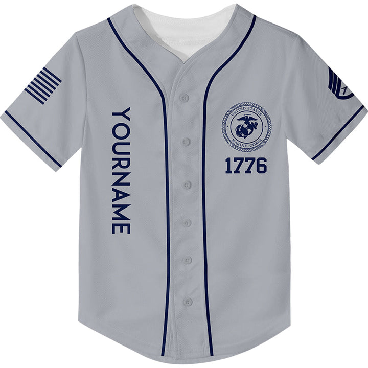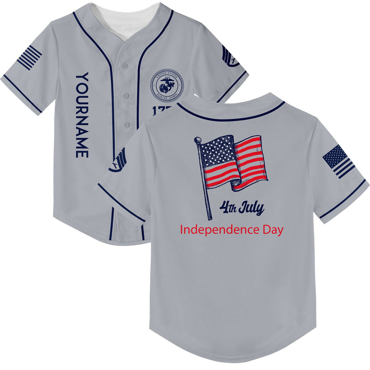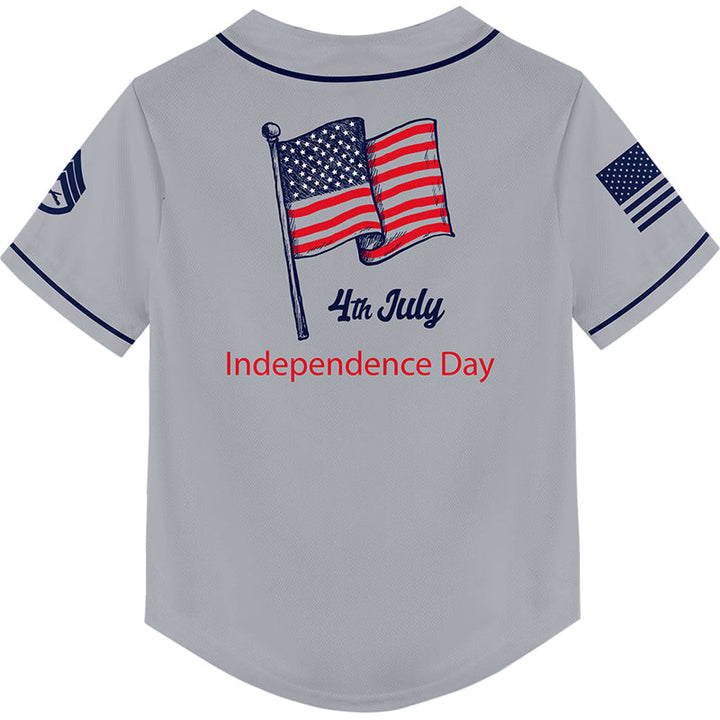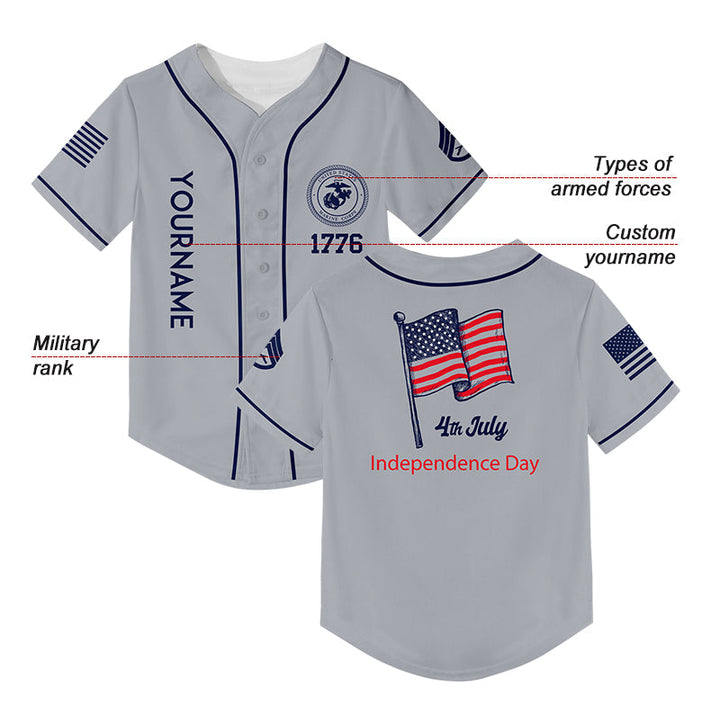 Custom Grey 4th July American Flag Military Rank Name Independence Day Baseball Jersey