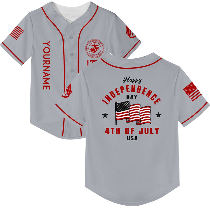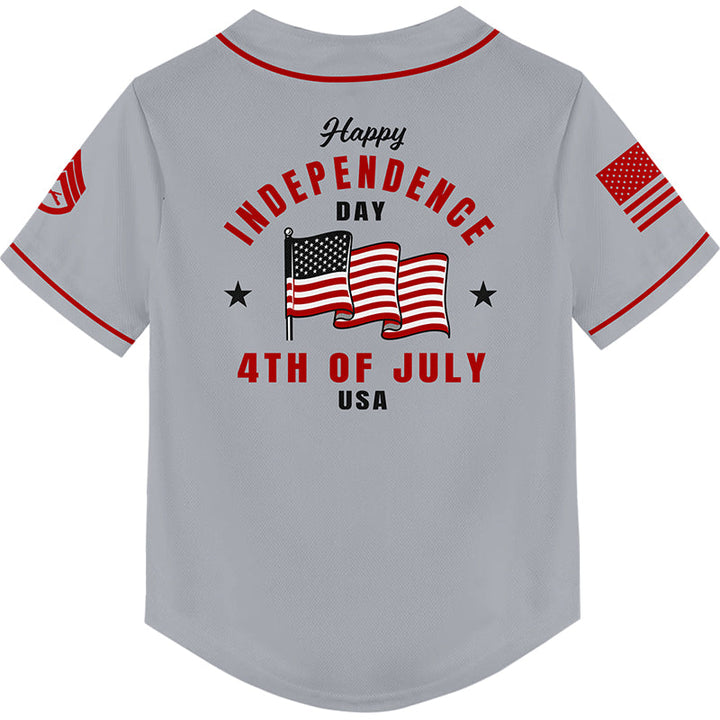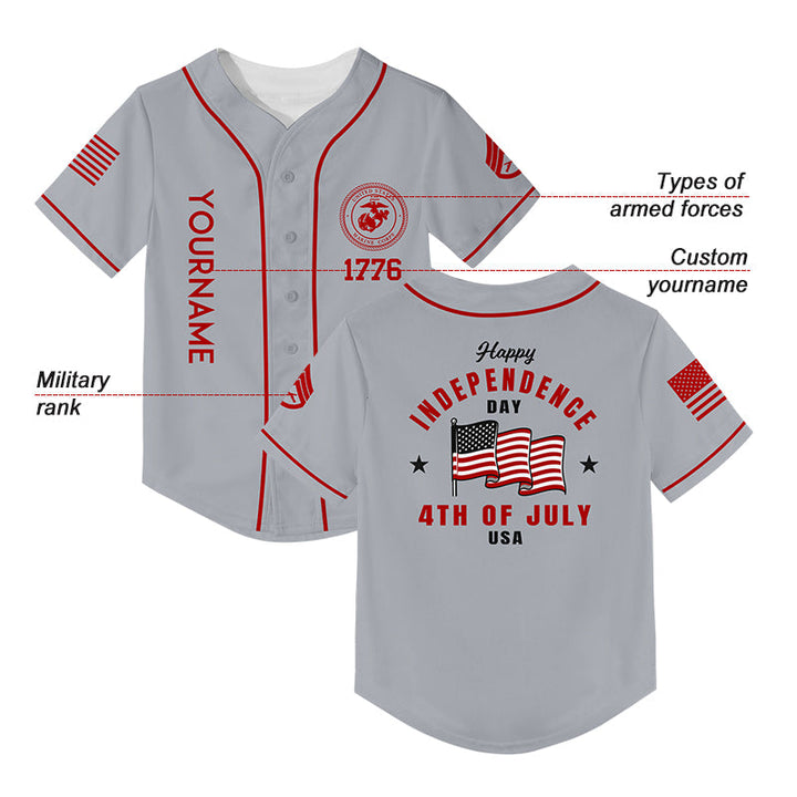 Custom Grey 4th Of July American Flag Military Rank Name Independence Day Baseball Jersey
