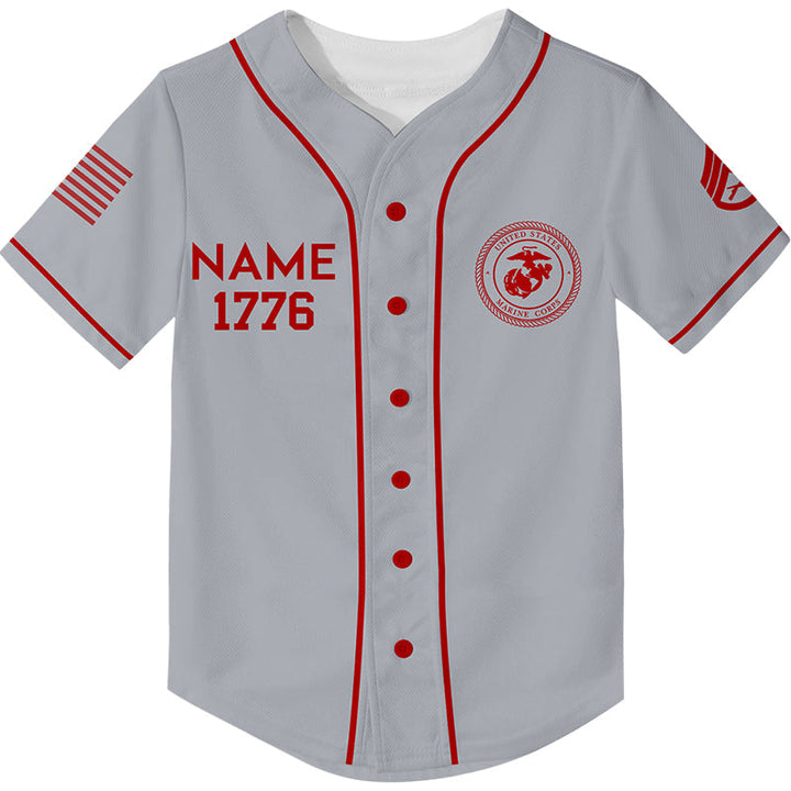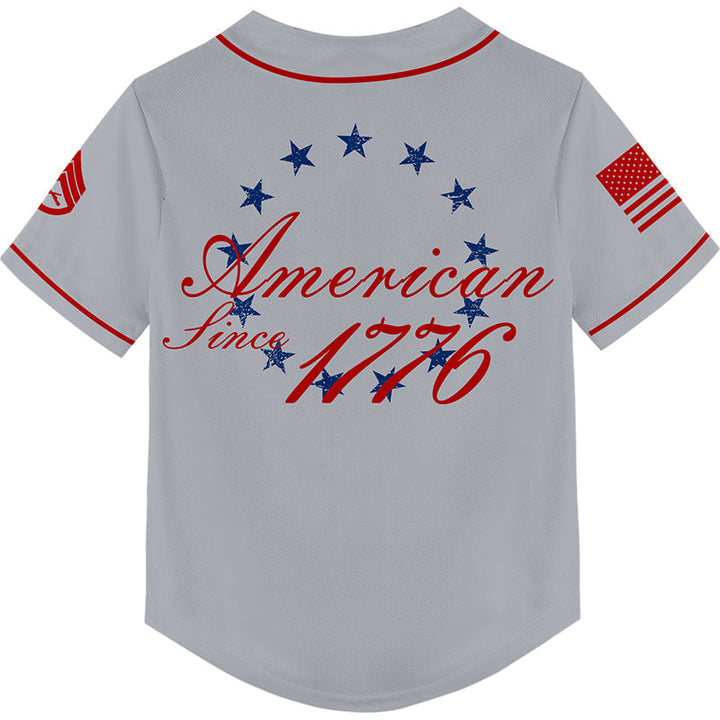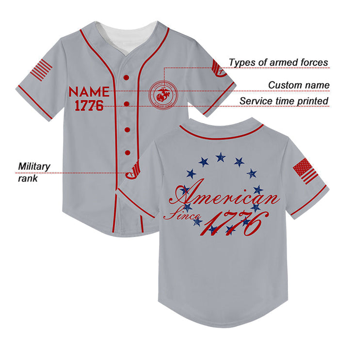 Custom Grey America Since 1776 Flag Military Rank Veteran Name Baseball Jersey