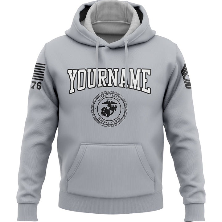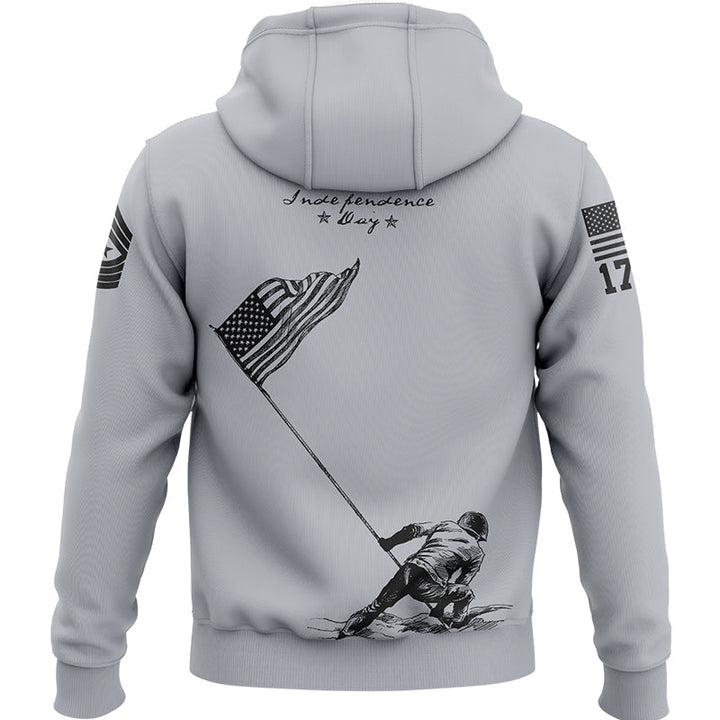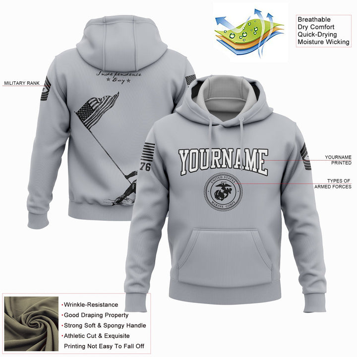 Custom Grey American Flag Military Rank Name Independence Day Hoodie | Father's Day Gifts