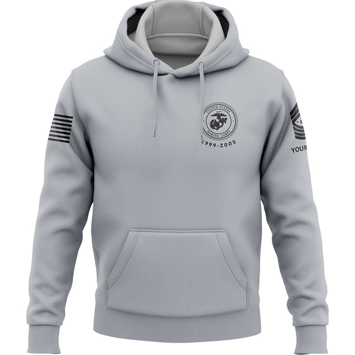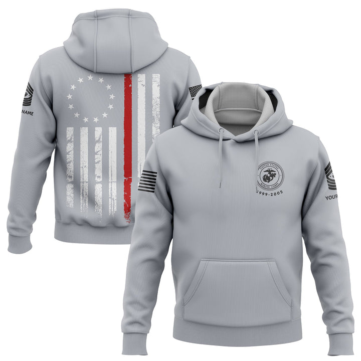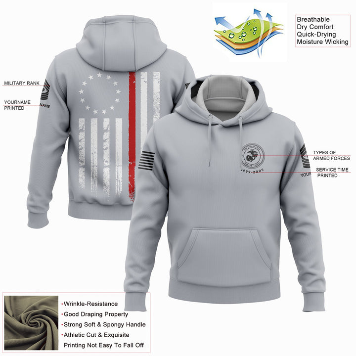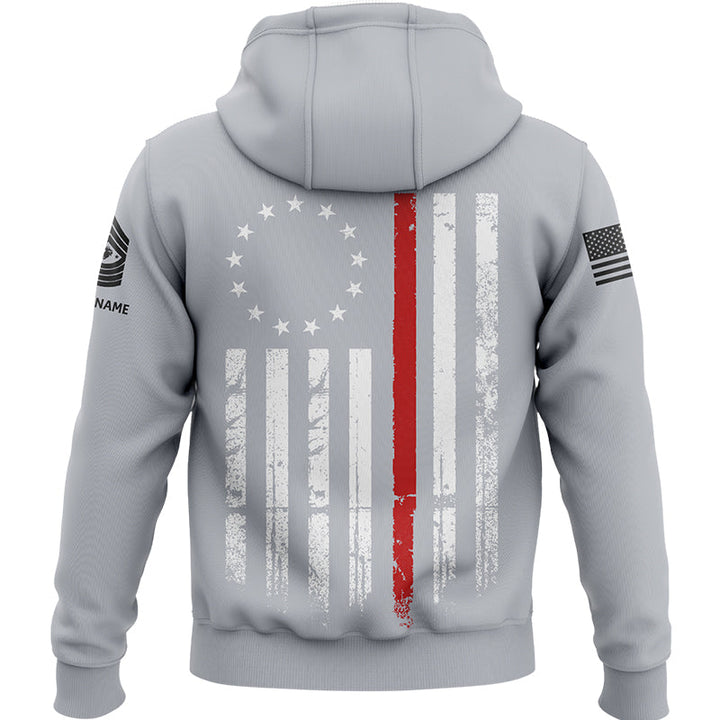 Custom Grey American Flag Military Rank Veteran Name Hoodie