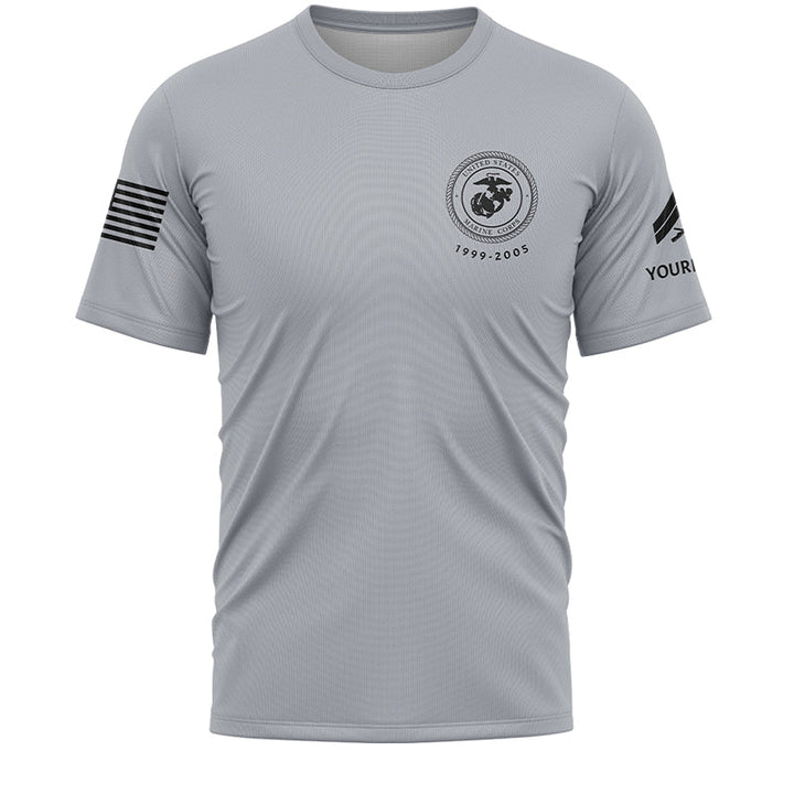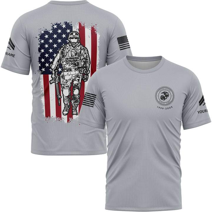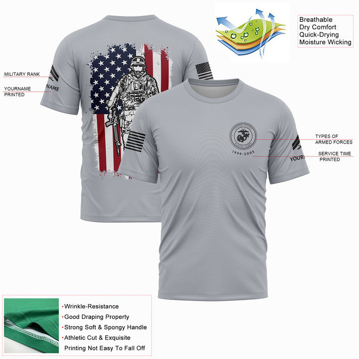 Custom Grey American Flag Military Rank Veteran Name T-Shirt