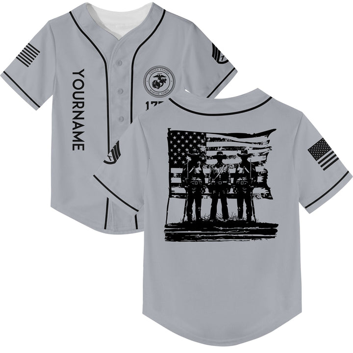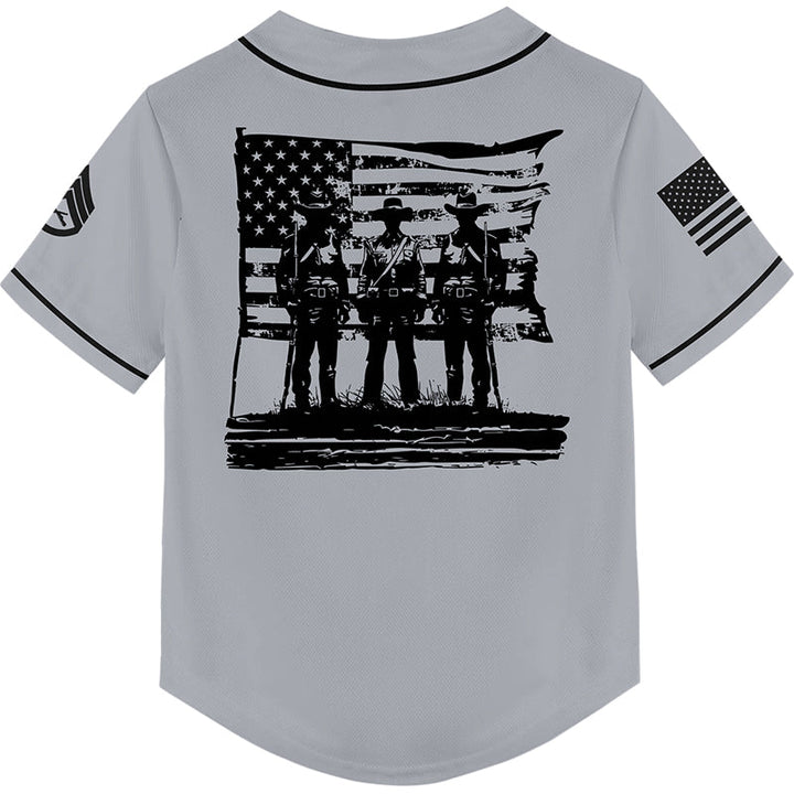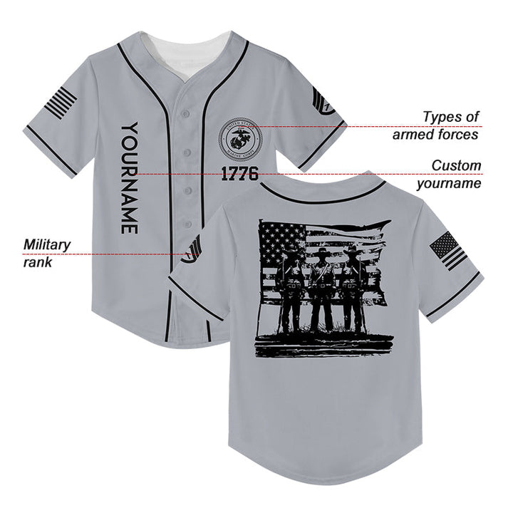 Custom Grey American History Flag Military Rank Name Independence Day Baseball Jersey