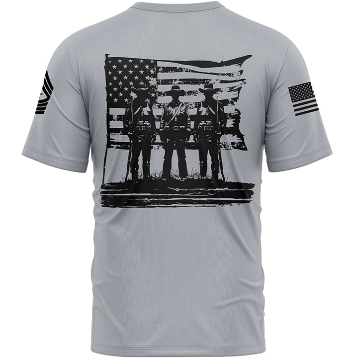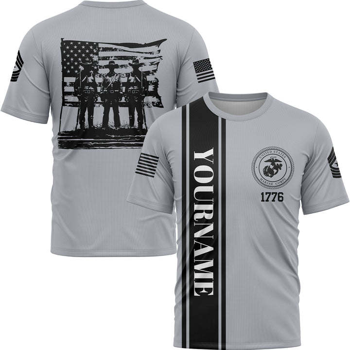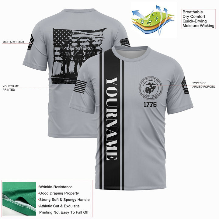 Custom Grey American History Flag Military Rank Name Independence Day T-Shirt
