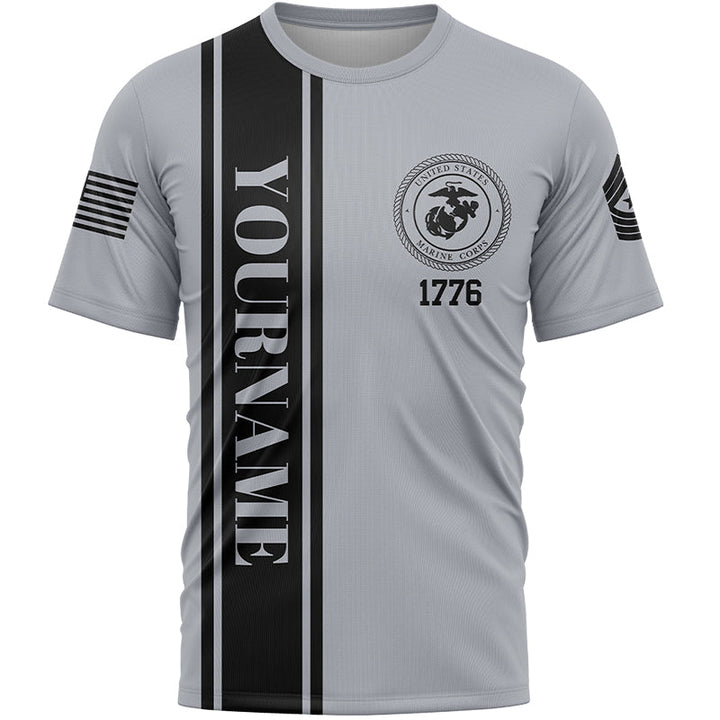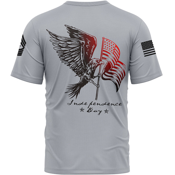 Custom Grey Eagle American Flag Military Rank Name Independence Day T-Shirt