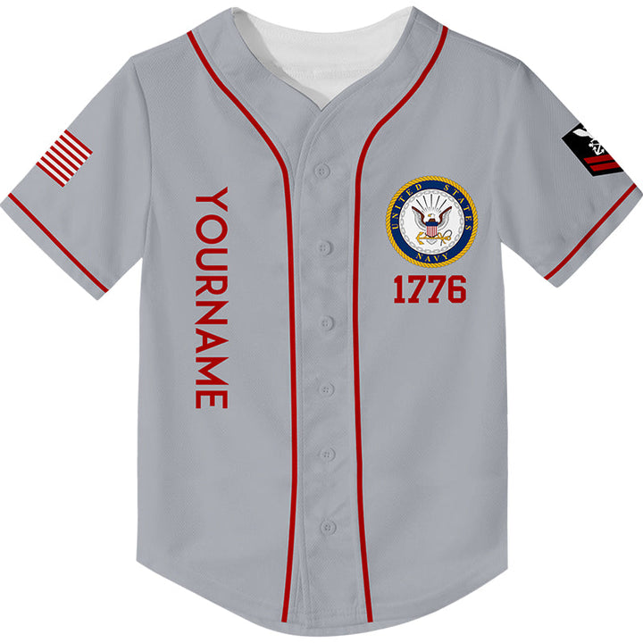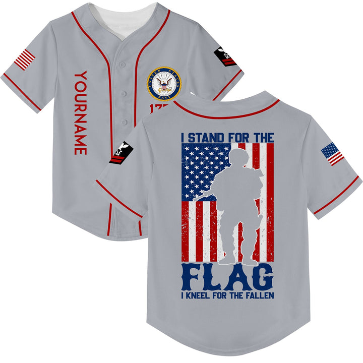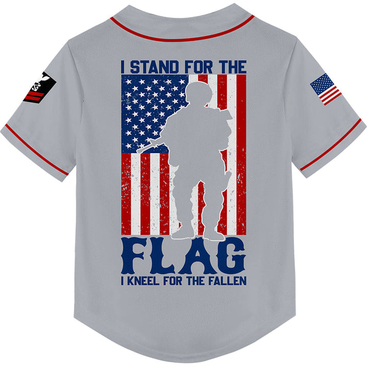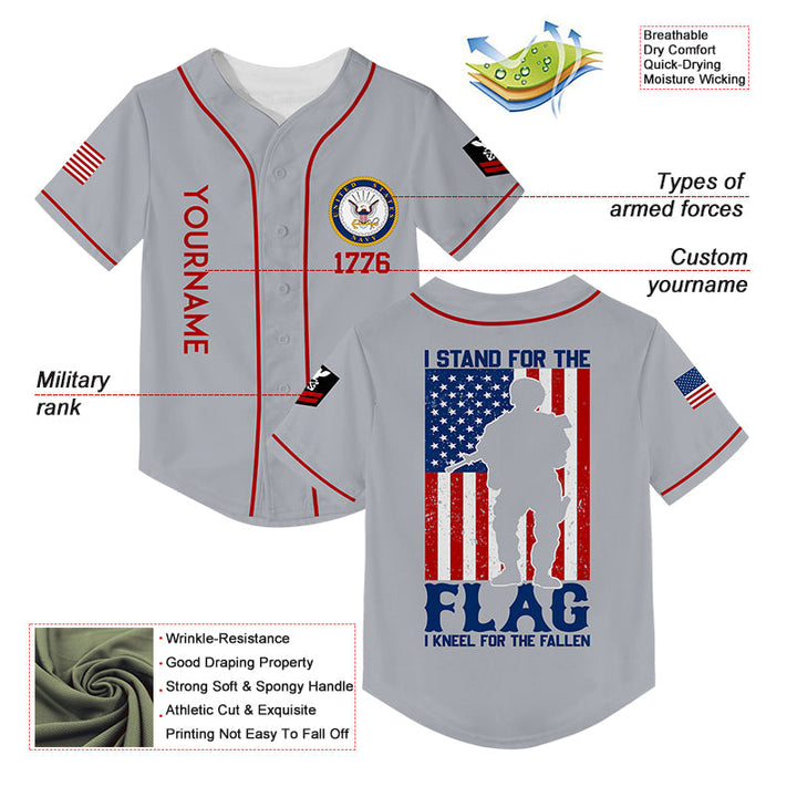 Custom Grey I Stand For Flag I Kneel For The Fallen 1776 Flag Military Rank Name Veterans Day Baseball Jersey
