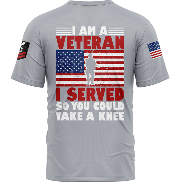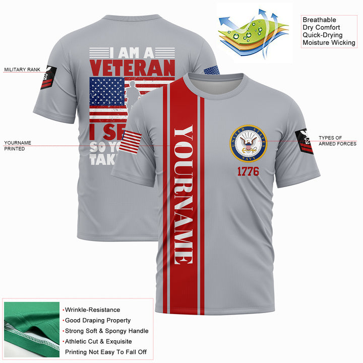 Custom Grey I'M A Veteran I Served So You Could Take A Knee 1776 Flag Military Rank Name Veterans Day T-Shirt