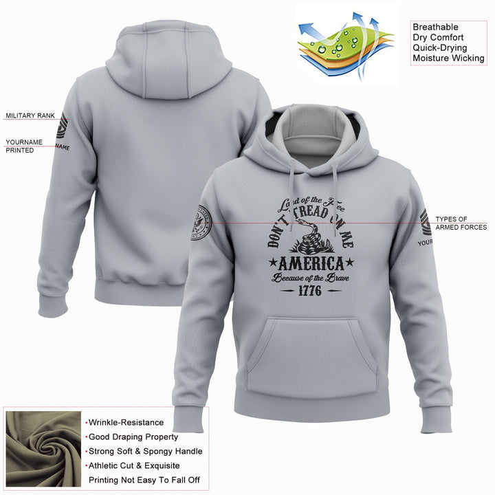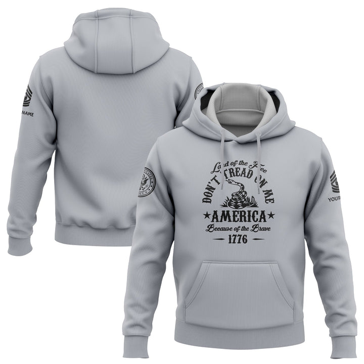 Custom Grey Land OF The Free Don't Tread On Me America Because Of The Brave 1776 Military Rank Veteran Name Hoodie