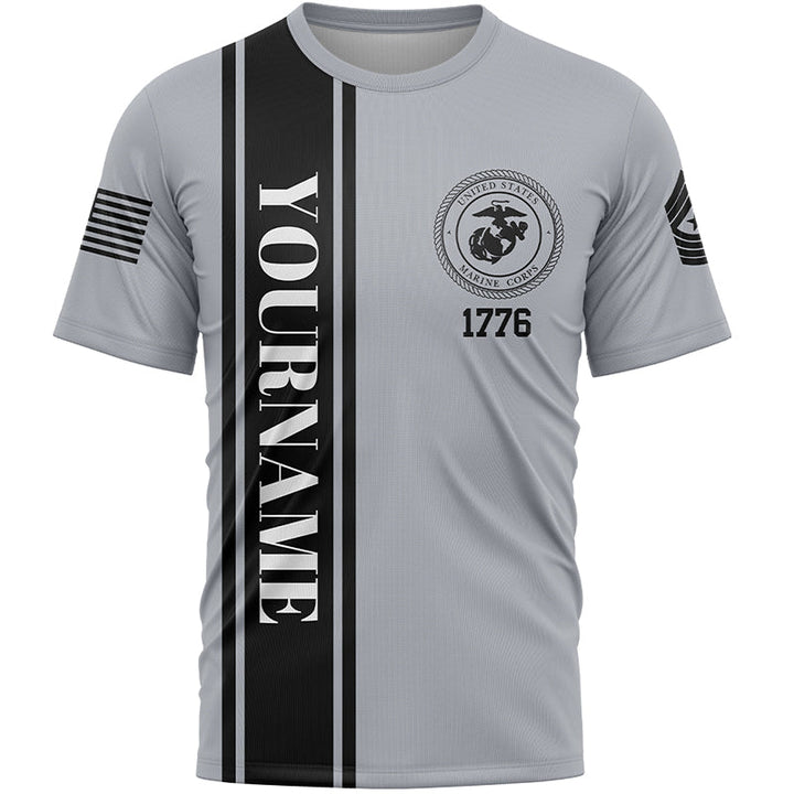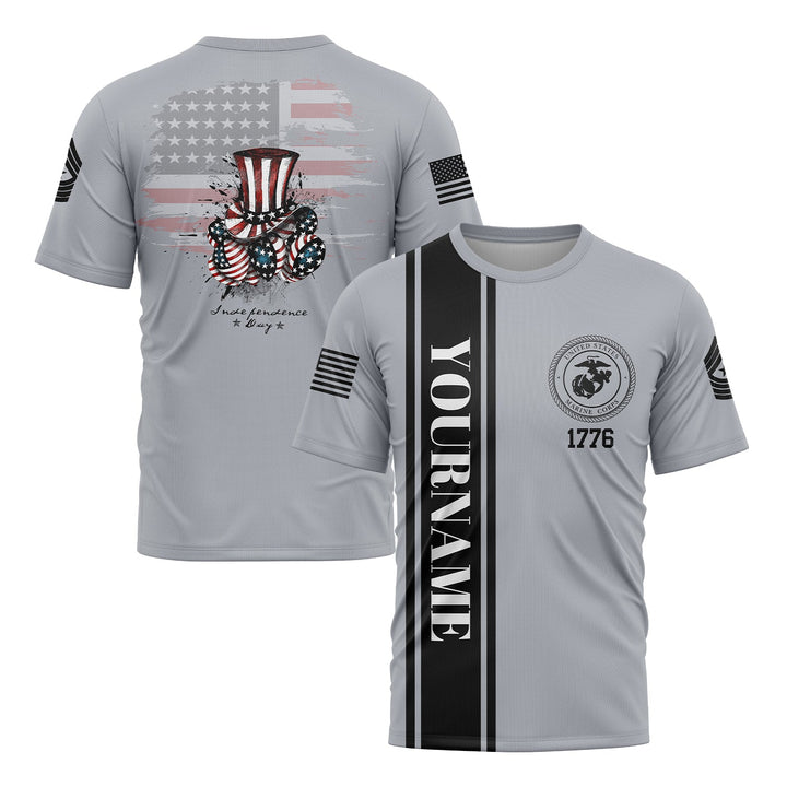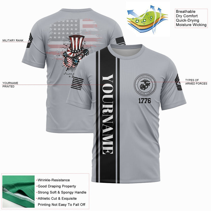 Custom Grey Magic Hat American Flag Military Rank Name Independence Day T-Shirt