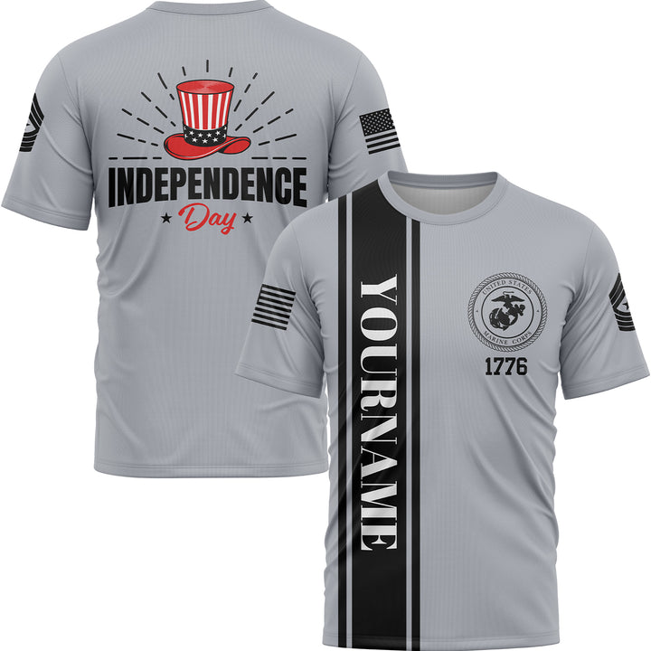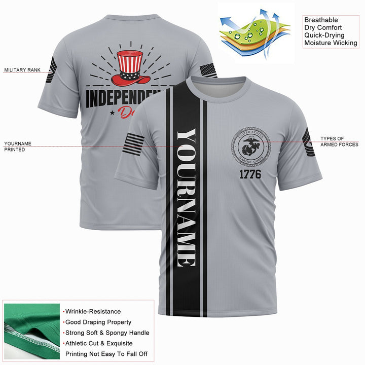 Custom Grey Magic Hat Military Rank Name Independence Day T-Shirt