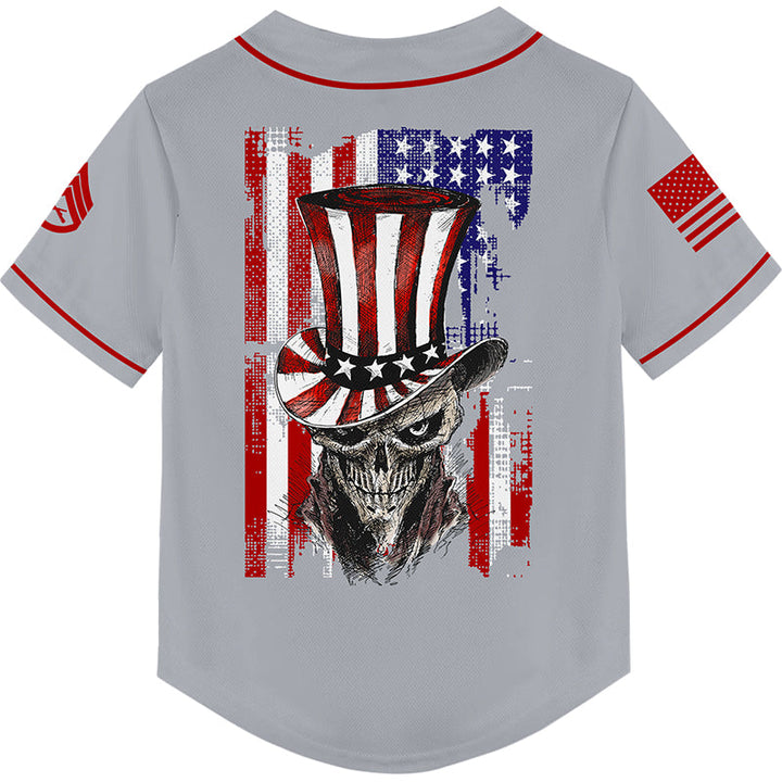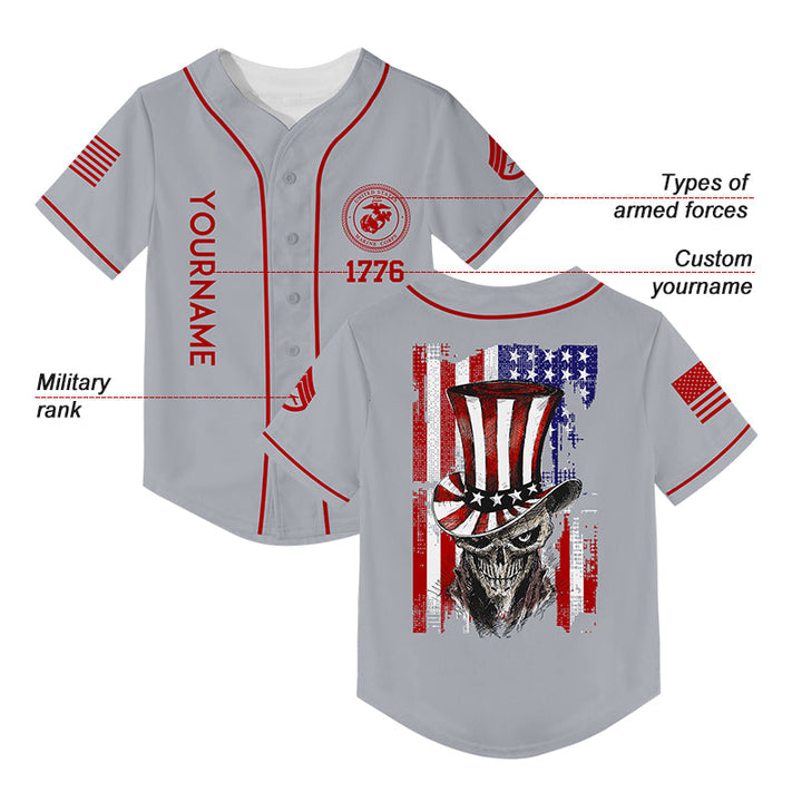Custom Grey Magician Skull Military Rank Name Independence Day Baseball Jersey