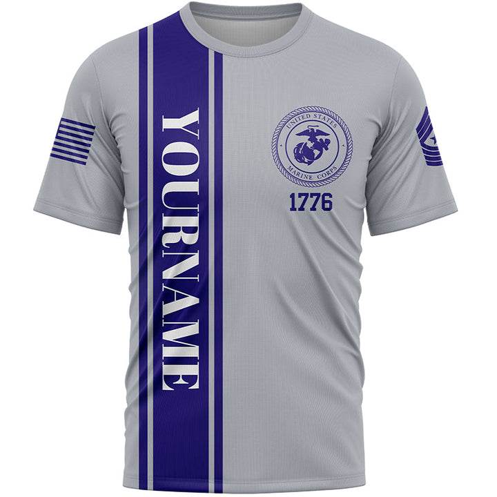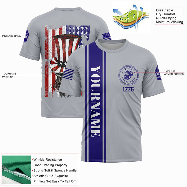 Custom Grey Magician Skull Military Rank Name Independence Day T-Shirt