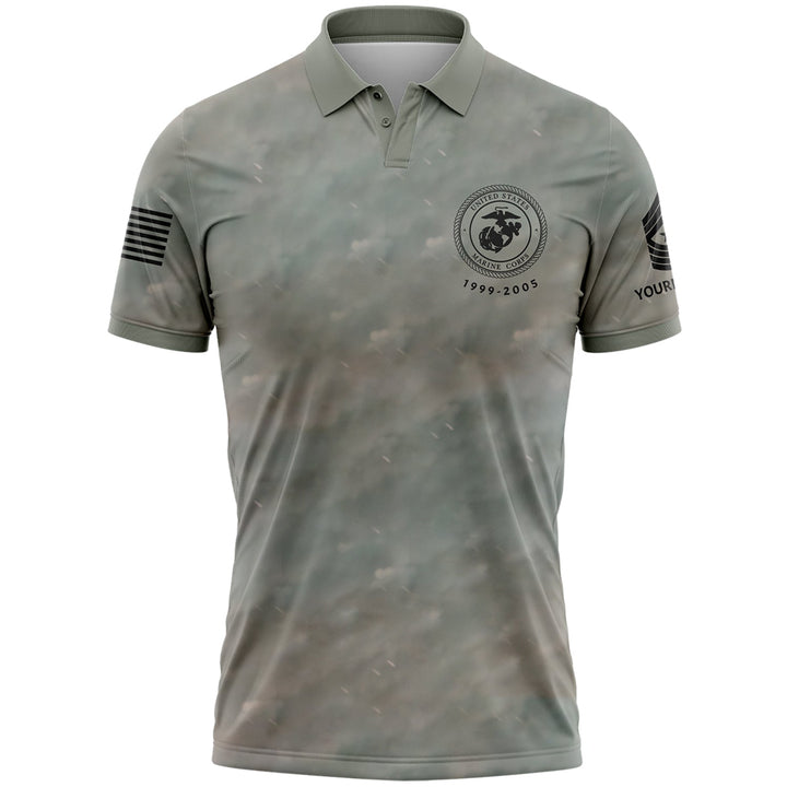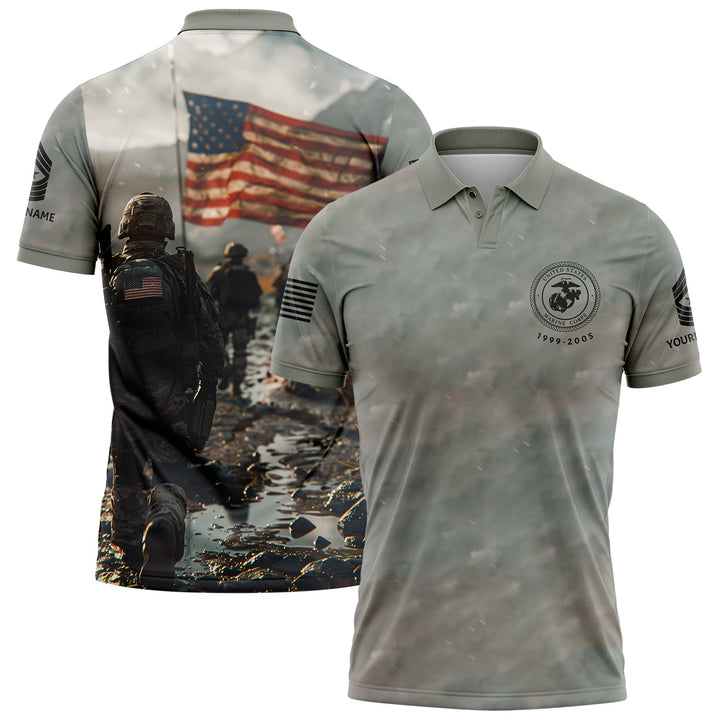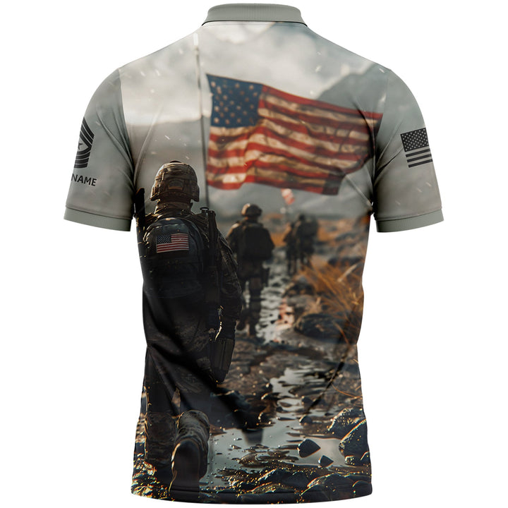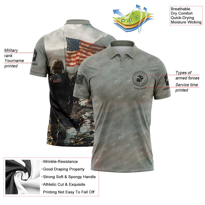 Custom Grey Military Rank Veteran Name Golf Polo Shirt