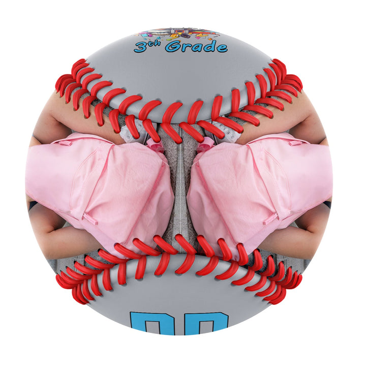 Custom Grey Ready Set Learn Starting School 3th Grade Photo Baseballs