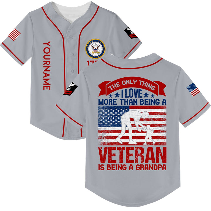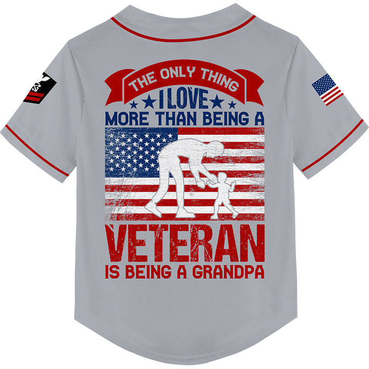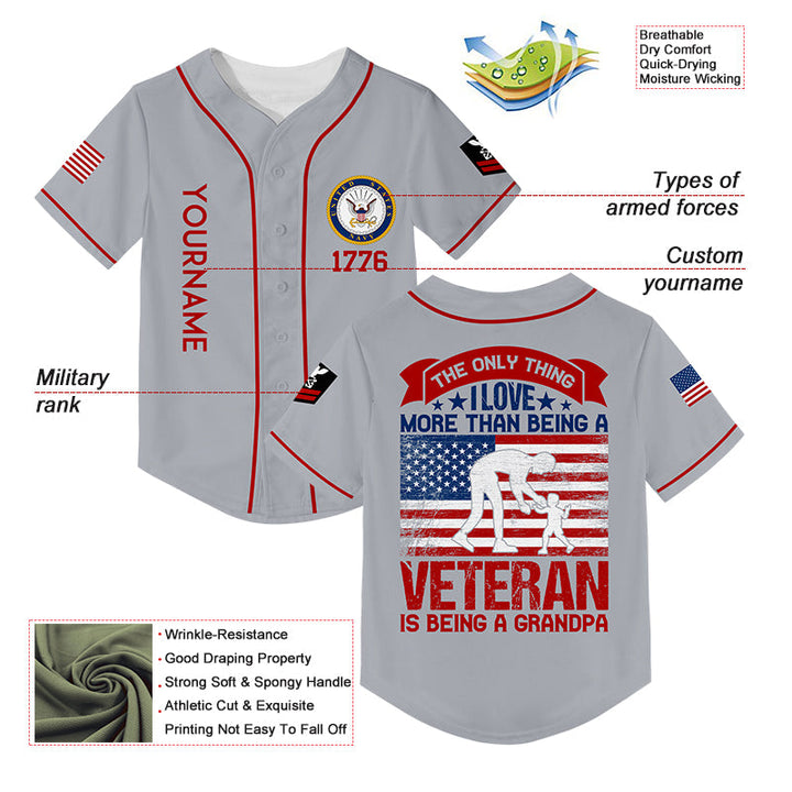 Custom Grey The Only Thing I Love More Than Being A Veteran Is Being A Grandpa 1776 Flag Military Rank Name Veterans Day Baseball Jersey