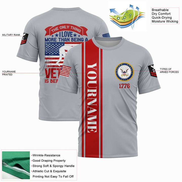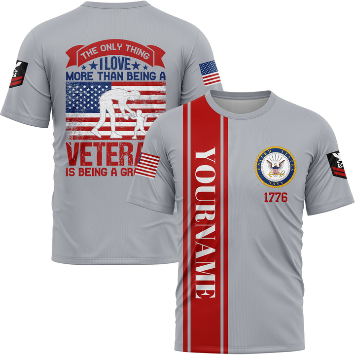 Custom Grey The Only Thing I Love More Than Being A Veteran Is Being A Grandpa 1776 Military Rank Name Veterans Day T-Shirt