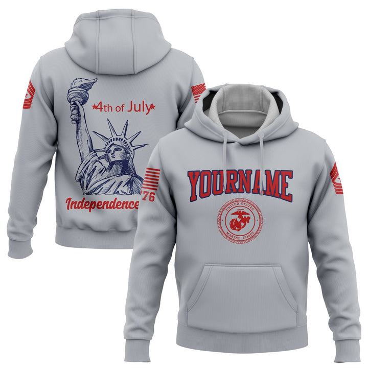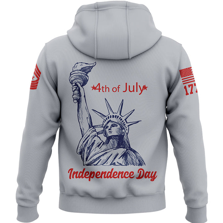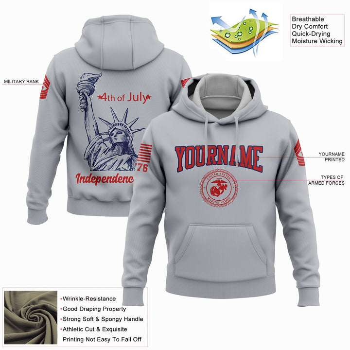 Custom Grey The Statue of Liberty 4th Of July Military Rank Name Independence Day Hoodie | Father's Day Gifts
